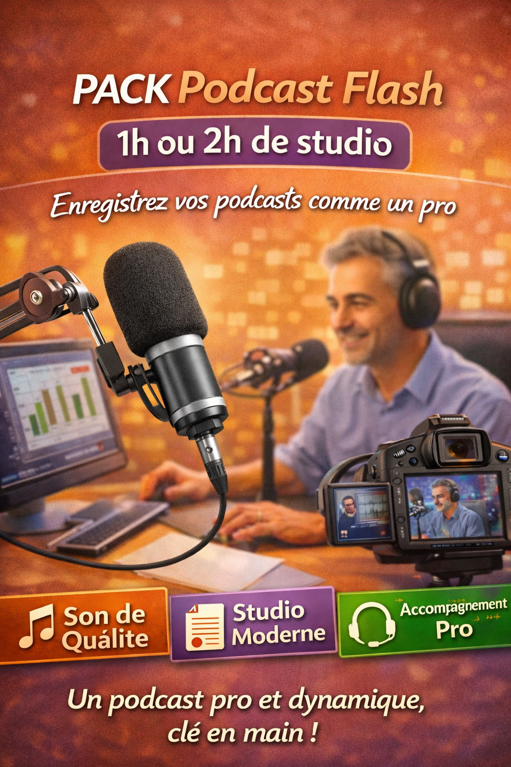 Le Pack Podcast Flash est conçu pour les dirigeants, indépendants, consultants, coachs, créateurs de contenu et entreprises qui veulent produire un épisode professionnel et repartir avec des contenus exploitables, sans y consacrer des jours.